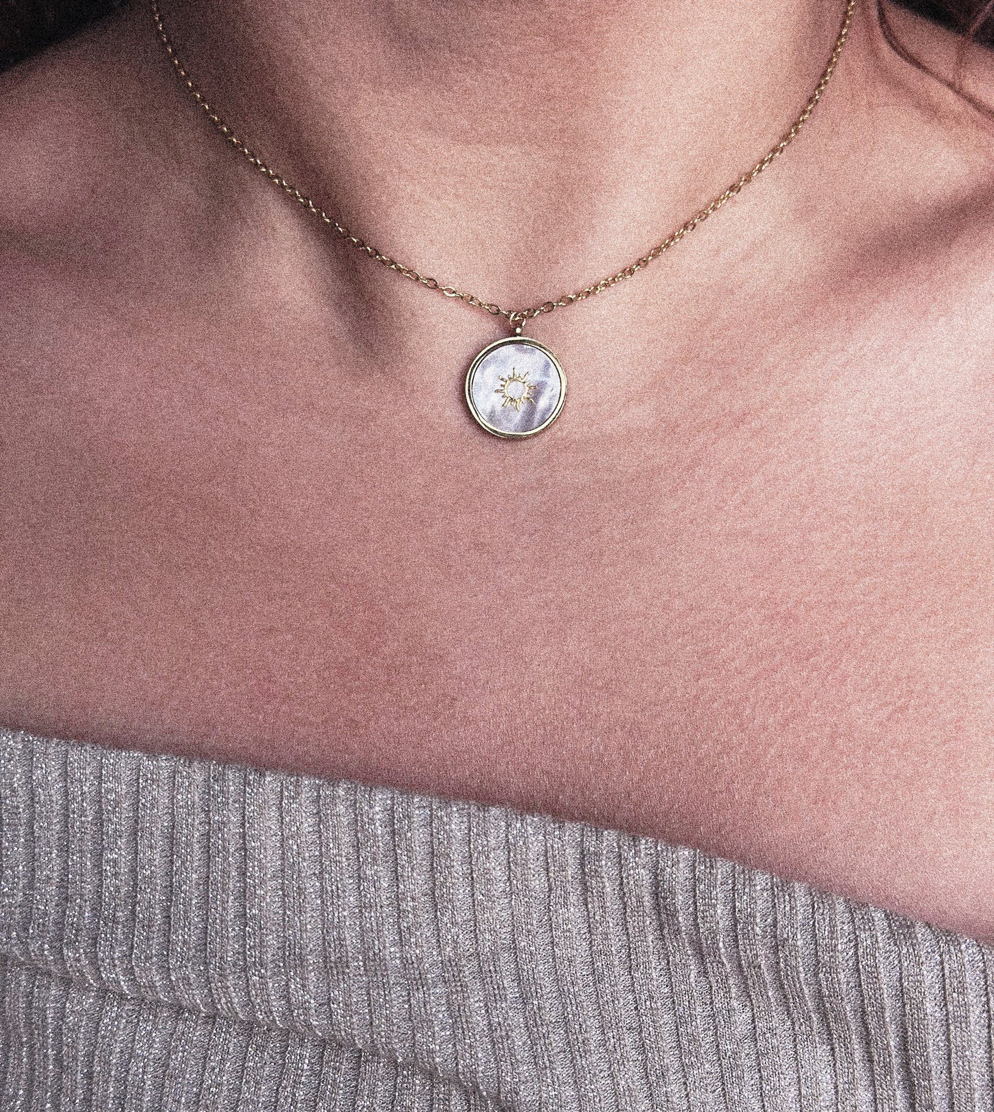 ✦ Le collier doré mesure 44cm + 5cm de chaîne d’extension.